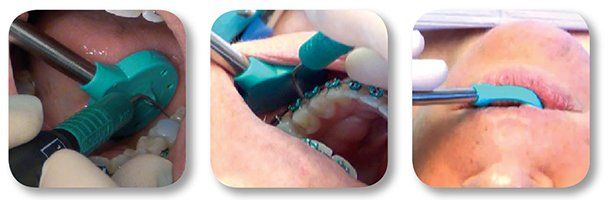 - The suction is very powerful so when possible allow the patient to close on only half of the mirror reflective surface. I usually say (after I have placed the mirror face against either their upper or lower lip), “with your lips close on this like a spoon.”